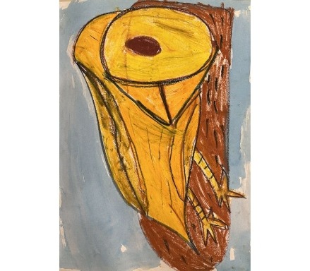 孩子筆下的夜鳥,靜靜棲息在夜色與樹幹交會的時刻,圓眼沉穩、線條俐落,如同在黑夜中默默守望。