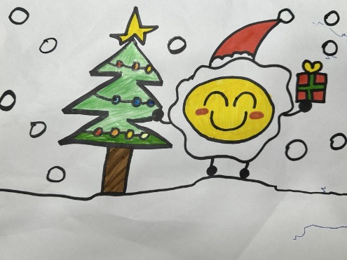 今年,我們特別請畫雞蛋小人的孩子,畫了一張「聖誕小人」