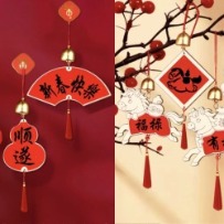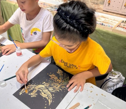 親手完成紅包袋、春聯、風鈴、帆布包與金箔畫等新年作品。