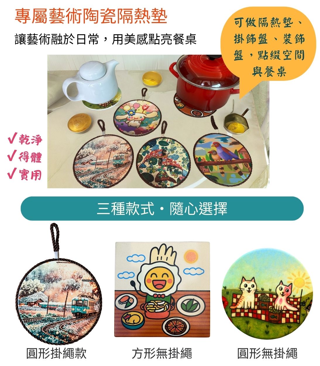 將孩子、家人或個人的創作,化為兼具美感與實用的 專屬陶瓷隔熱墊。