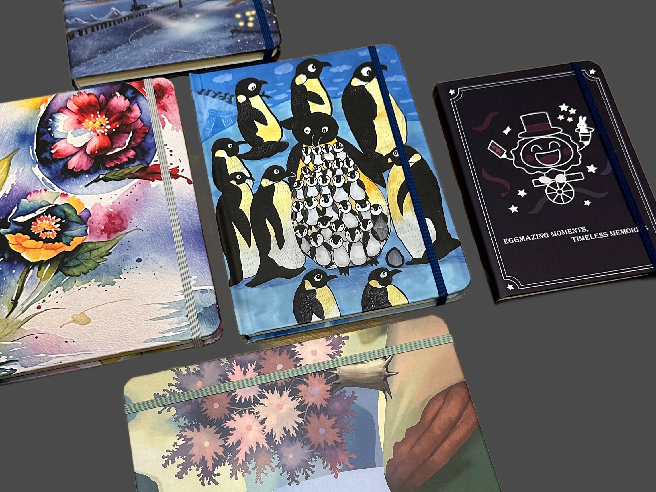 硬殼精裝封面附綁帶,堅固典雅,質感耐用,搭配高磅數內頁及專屬封底&扉頁設計,讓每一次書寫都成為創意時光。