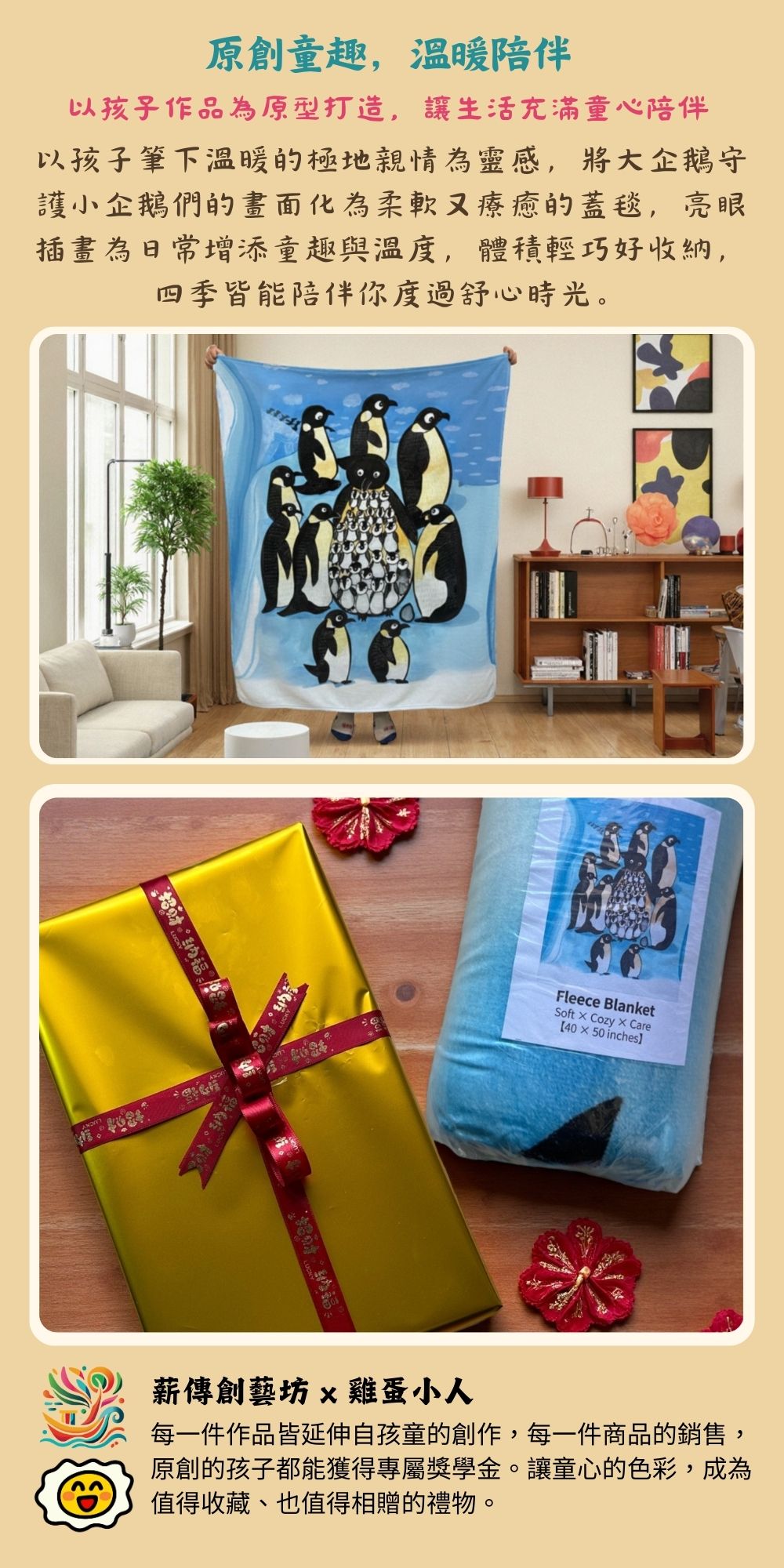✨馬年新春禮盒,每件包含一條柔軟親膚的法蘭絨毛毯,一件品牌小物,加贈一組三張馬年限定紅包袋,讓新的一年馬到成功、福氣相隨! ☀ 柔軟親膚觸感:細緻溫柔不刺激,大人小孩皆適用 ☀ 四季皆可使用:保暖不悶熱,居家外出皆實用 ☀ 源自童心創意:延伸孩子原創作品,讓每條蓋毯都充滿想像力 ☀ 輕盈方便攜帶:質量輕巧好收納,旅行也能帶著走 材質: 100% 聚酯抓毛絨 Polyester Fleece 尺寸: 40x50英吋 (約100 x 125 公分) 商檢編號: M3H787