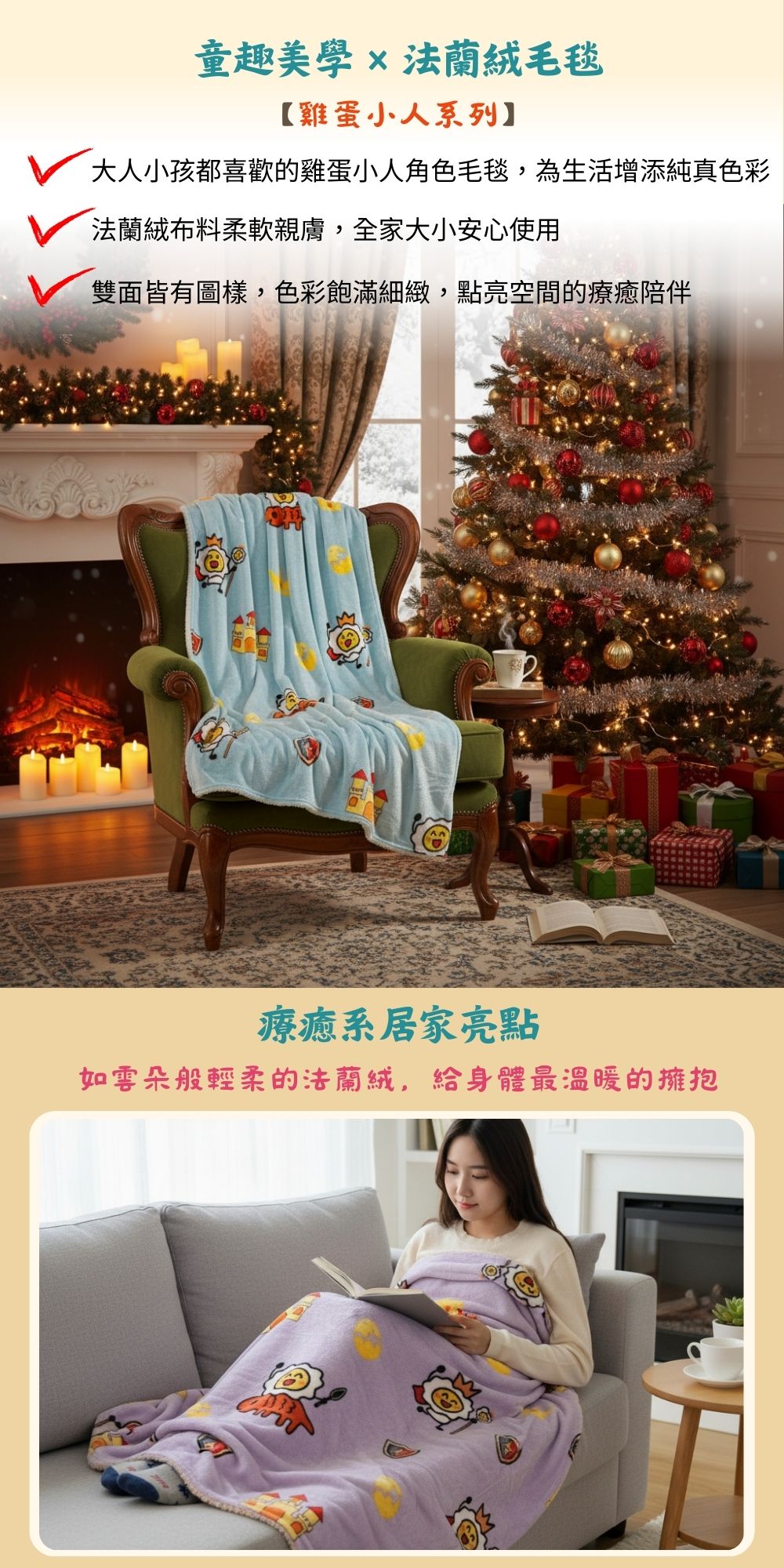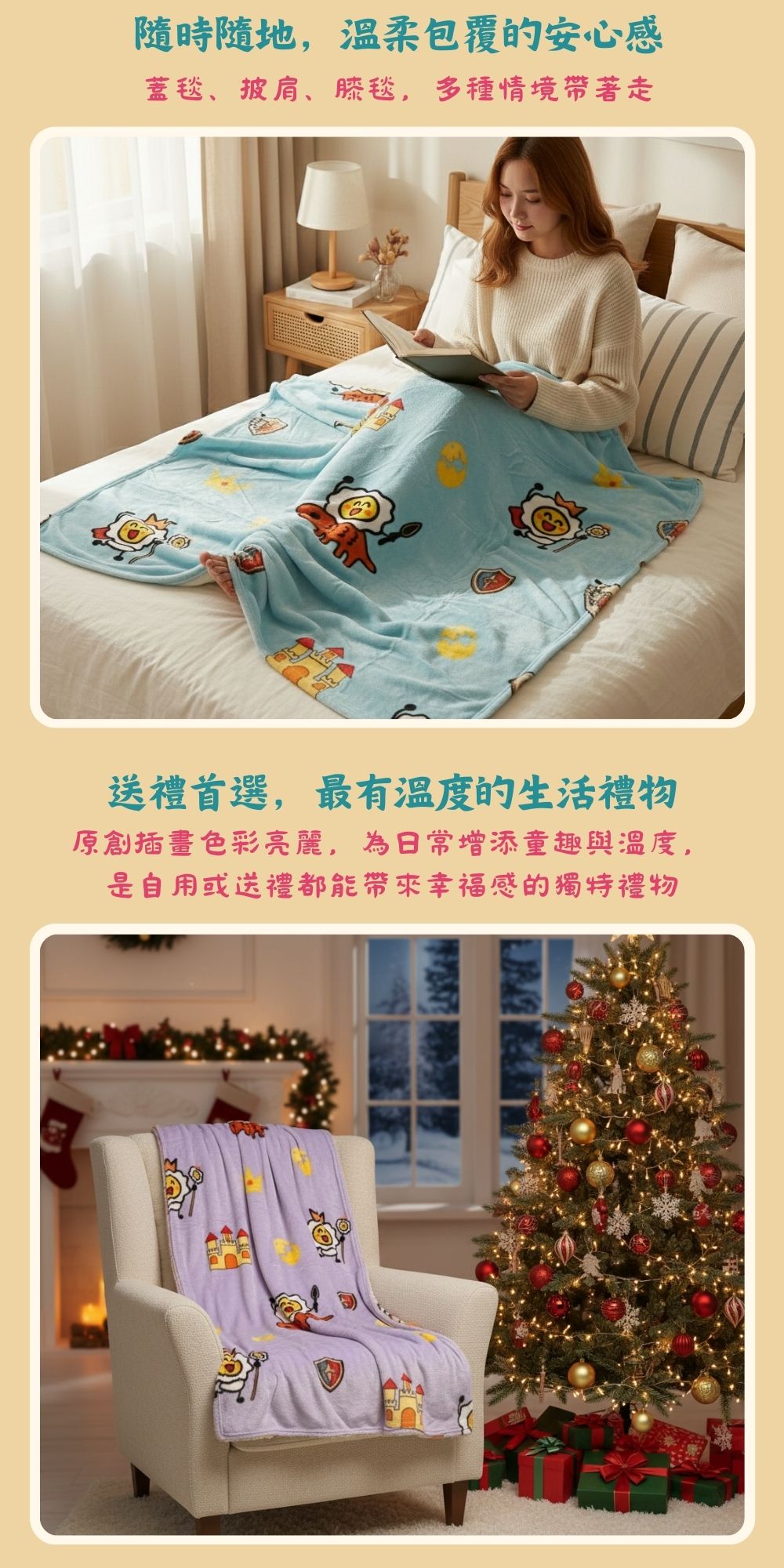 • 法蘭絨毛毯,雞蛋小人,Egg Friends,可愛,療癒,保暖,萬用毯,薄毯,午睡毯,披肩,聖誕禮物,交換禮物,旅行