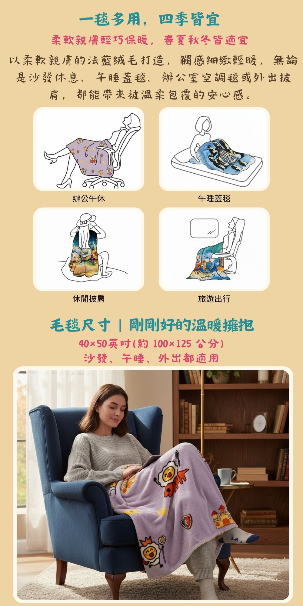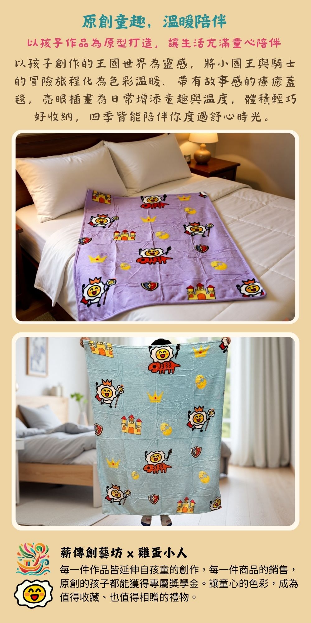 【新年禮盒】雙面法蘭絨毛毯 - 《雞蛋小人》國王騎士款 | 療癒保暖萬用毯