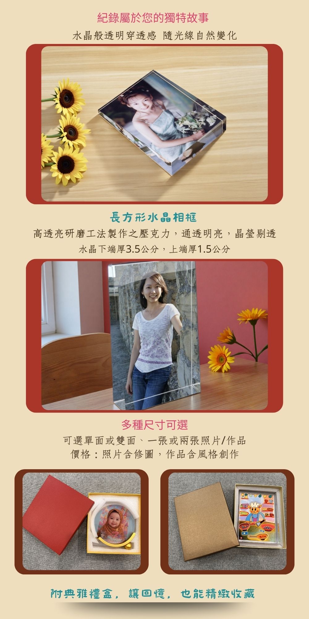 即贈送 同款圖樣5吋(9x13公分)長方形水晶相框 1 件。