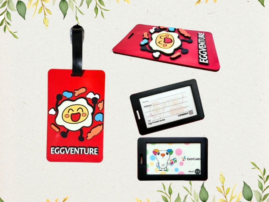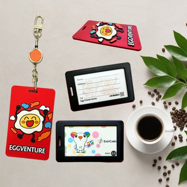 耐用軟膠材質,背面附資訊卡,大小可放學生證、悠遊卡、識別證,皮革吊環可更換為金屬掛勾或質感易拉扣。