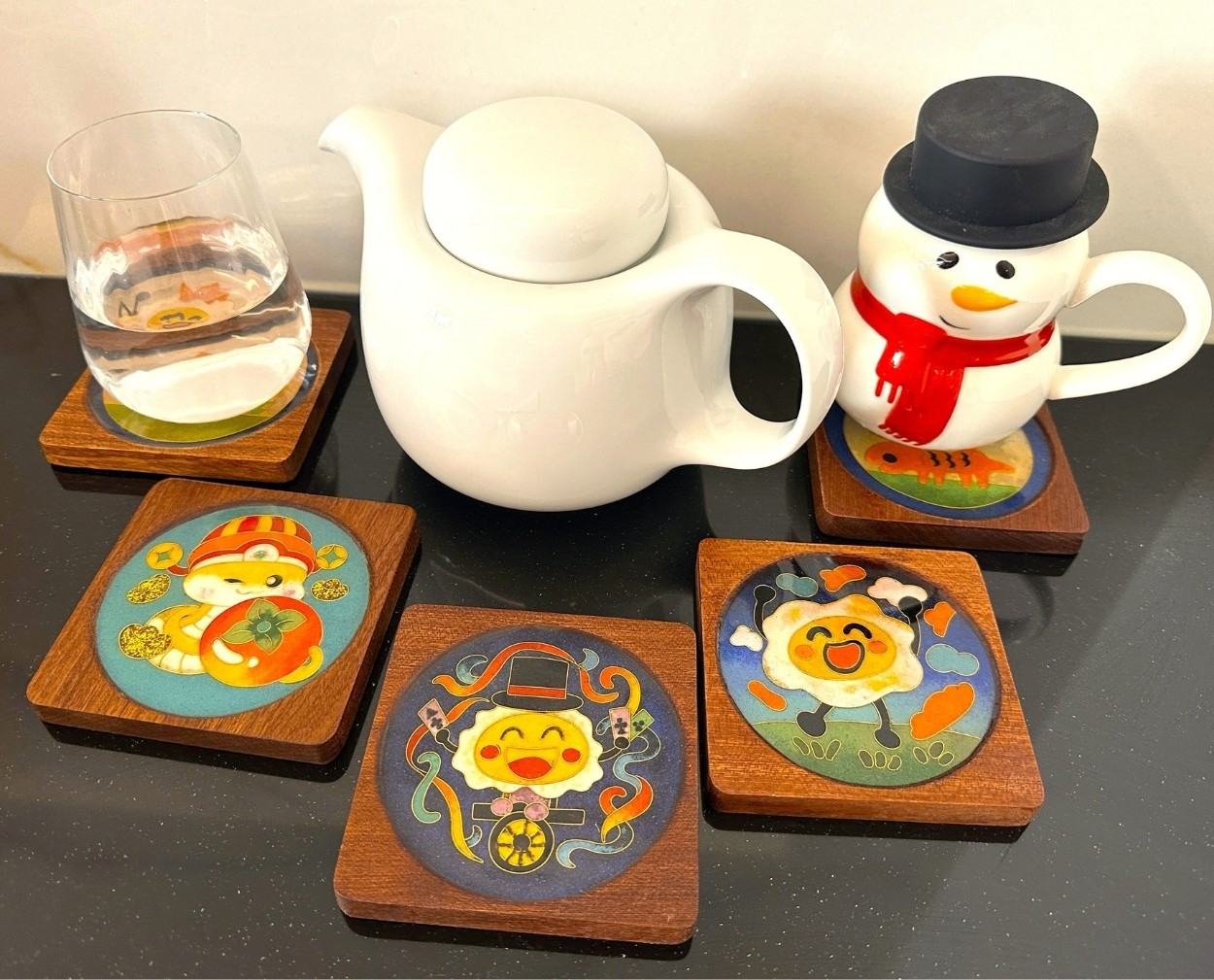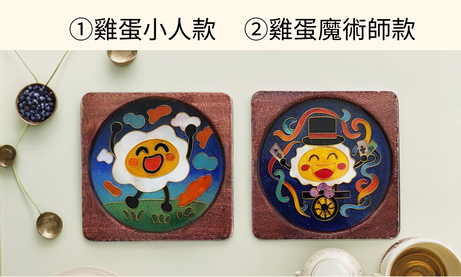 我們將孩子隨手的塗鴉設計為彩色線稿,以精緻掐絲工藝勾勒圖案,搭配琺瑯釉料漸層填色,成為兼具藝術美感與實用價值的杯墊。每一道線條皆由工藝師傅細緻打造,溫潤光澤中蘊藏手作的厚度與溫度。