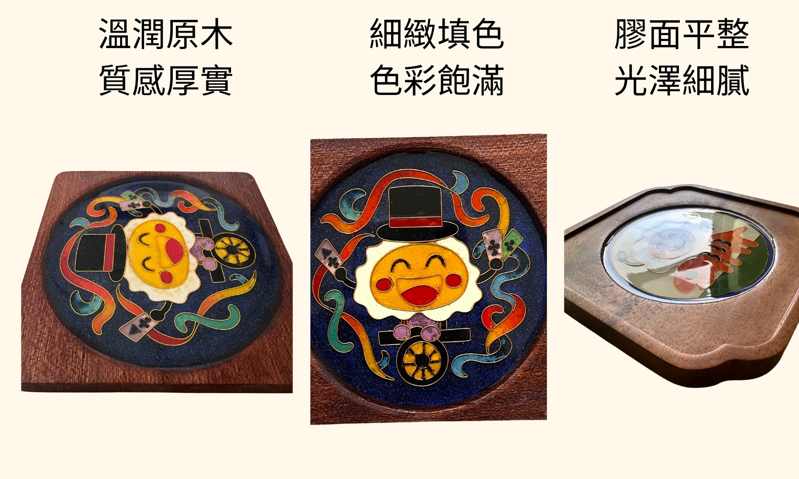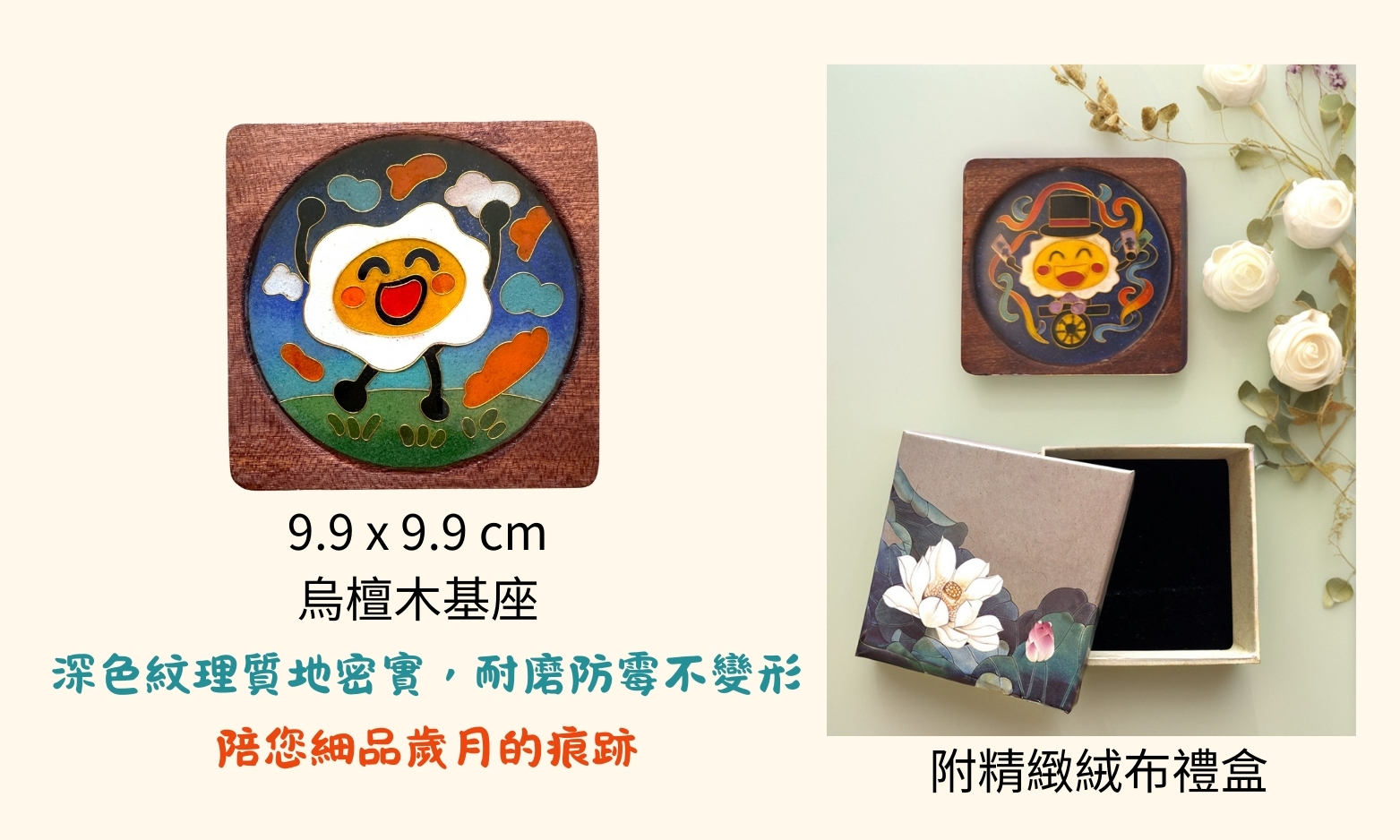 嚴選烏檀木底座,色澤溫潤典雅;搭配細膩掐絲與漸層填色工藝,每件作品皆凝聚職人工藝的厚度與溫度。