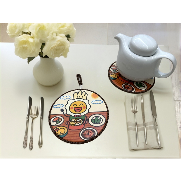 「雞蛋大廚」陶瓷隔熱墊以鮮明插畫勾勒出烹飪的快樂時光,繽紛色彩與可愛角色讓空間充滿溫度。背面軟木設計防滑耐用,可作餐桌隔熱墊、牆面掛飾或小巧收藏。兼具趣味與實用,讓烹飪與用餐都更有儀式感,是送禮與自用的理想之選。